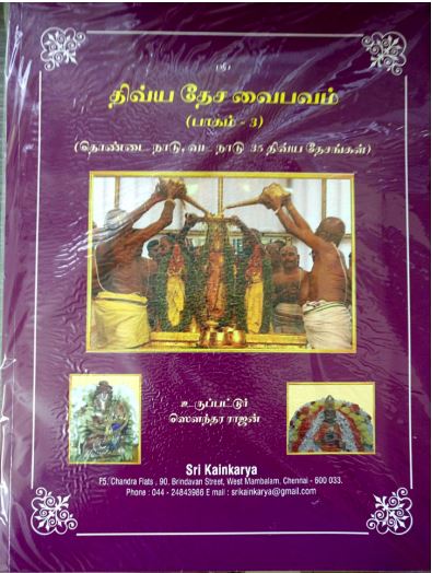 திவ்யதேச வைபவம் -பாகம் 3 தொண்டை நாடு , வடநாடு யாவற்றிலும் எம்பெருமான்களின் A 4 கலர் போட்டோக்கள், திவ்யதேசத்தைப்பற்றிய முழுவிவரம், Route map contact details உள்ளன.