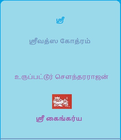 ஸ்ரீ வைஷ்ணவ ஸம்ப்ரதாயம் -சில முக்ய ஸ்ரீ வைஷ்ணவ ஸம்ப்ரதாய விஷயங்கள் (அடிப்படை விவரங்கள்) .